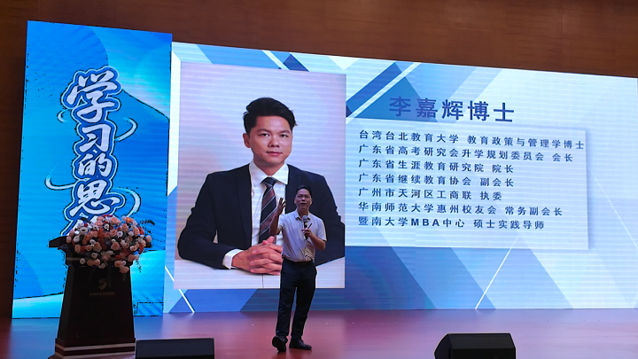 广东省高考研究会升学规划委员会会长、广东省生涯教育研究院院长李嘉辉博士以大量的数据指导大家 做 好院校选择、未来规划等。惠州 市第一中学 数学教师、惠州市优秀教师黄伟才分享了如何启发思维、提高学习效率;刘鑫涛的妈妈分享了如何 做 好孩子成长路上的同行者。