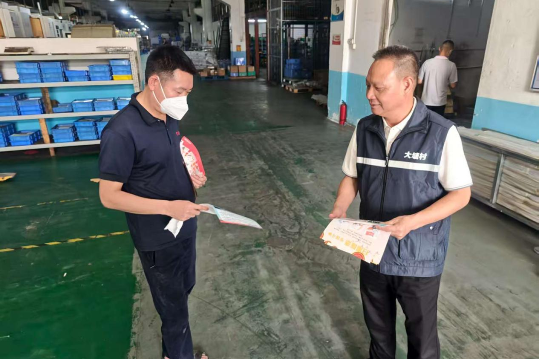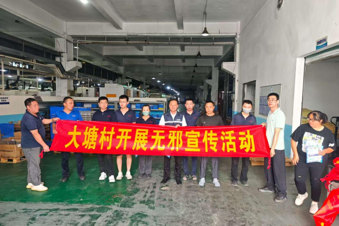大塘村反邪队伍深入东莞市华盈机电有限公司,向企业工人发放宣传材料等方式,为工人现场讲解了“邪教的危害、如何辨别邪教、邪教和宗教的区别”等知识,提醒广大居民防范邪教、远离邪教,对邪 教歪理邪说要做到不听、不信、不传。