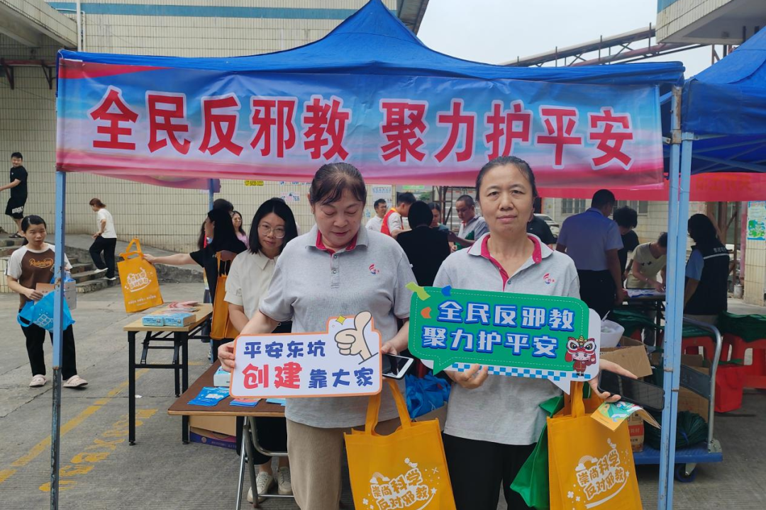 为进一步拓展反邪教警示教育宣传的广度和深度,增强群众识邪、辨邪、防邪、反邪意识,近期东坑镇平安法治办在鹰岭公园、长安塘篮球场、昌隆厂等人流密集场所集中开展反邪教宣传活动,切实增强辖区居民防范和抵制邪教侵害的能力。