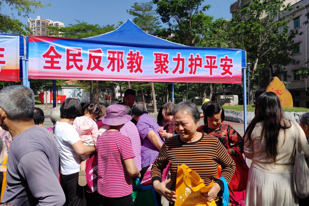 活动中,工作人员深入浅出地科普反邪教相关知识,引导居民群众积极举报邪教违法犯罪活动线索,鼓励居民群众参与阅读反邪知识手册、回答反邪小知识、宣读反邪教宣言等小活动,倡导大家保持清醒头脑,对邪教做到不听、不看、不信、不传。