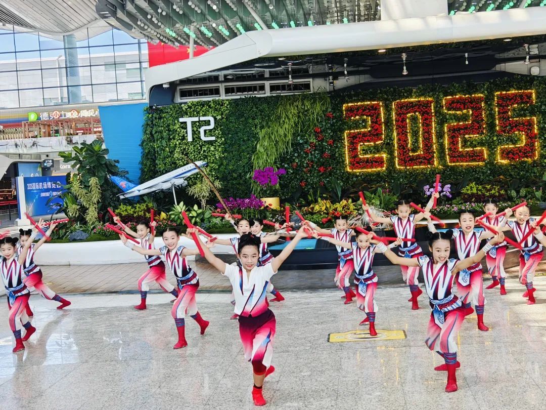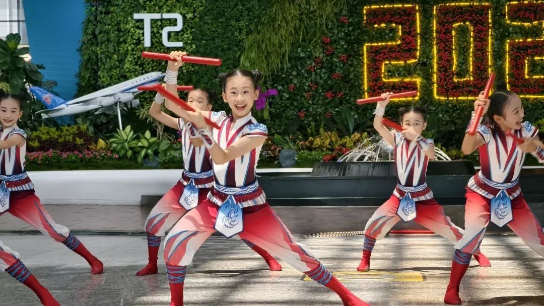 7月26日下午,伴随着热烈的鼓点响起,网红传统非遗表演英歌舞的“迷你版”在白云机场航站楼闪亮登场——这支特殊的英歌队伍刚在7月21号举行的"粤港澳大湾区青少年艺术总展演"获得金奖,平均年龄只有9岁,小小的身形迸发大大的能量,引来旅客掌声和欢呼连连。“白云机场把非遗项目带进旅途中,让孩子们更多接受到传统文化的熏陶,我觉得很有意义。”旅客陈先生说道。