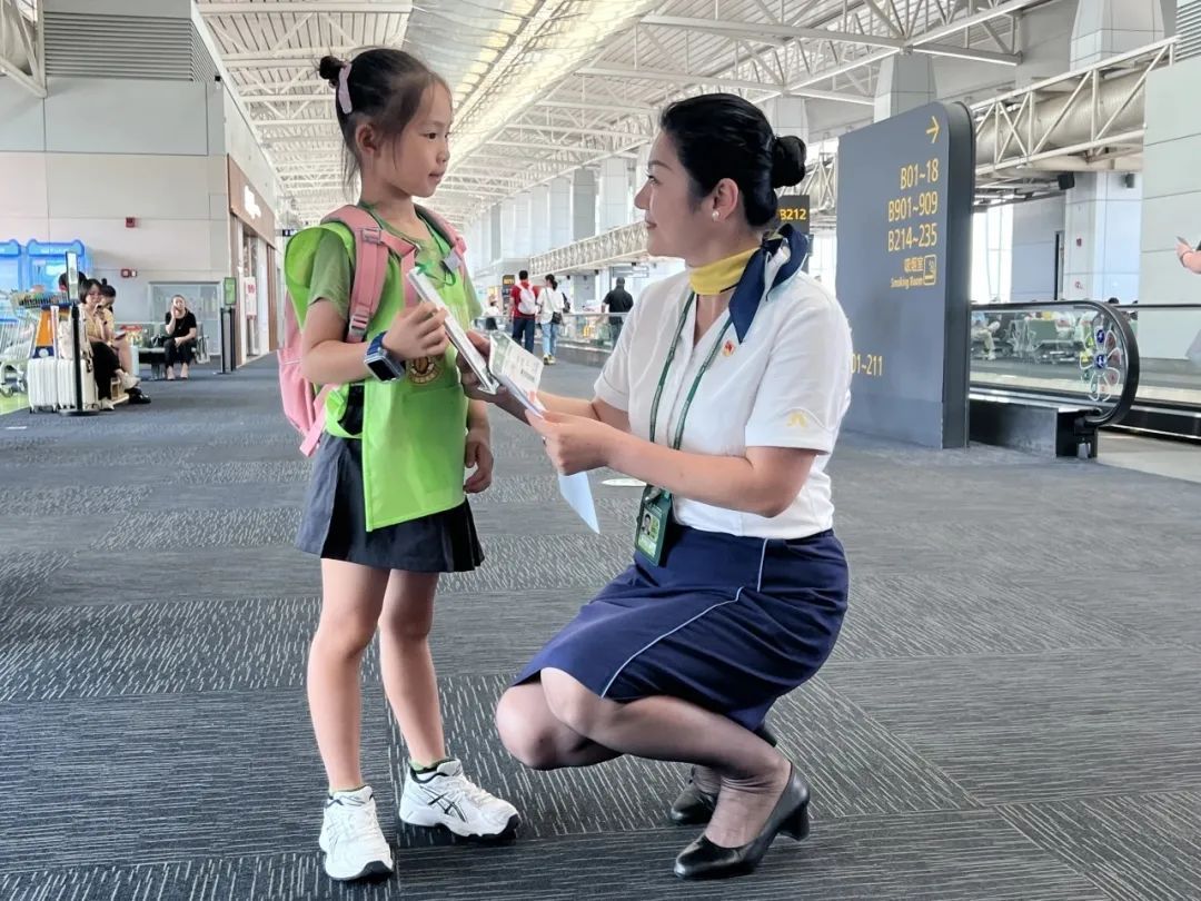 据介绍,今年暑假白云机场全面升级无陪儿童服务,“无陪接待站”新增了旅客休息区、爱心座椅。除了专人陪护候机,小旅客们还可以在白云机场参与“今天我生日”纪念徽章等小礼品领取、领取“云端寻宝”游戏护照在航站楼网红打卡点参观打卡,充实小旅客候机时光。