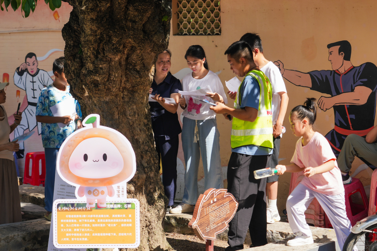 活动中,作为三代护绿人,老护绿员、现任护绿员和儿童代表共同为龙眼古树安装古树宣传科普板,并为现任护绿员献上白云区定制的“古树徽章”。现场还设置了“白云古树精灵”IP互动区,市民通过扫码了解古树历史,参与线上认养,写下“我和树的故事”,即可兑换限定文创。