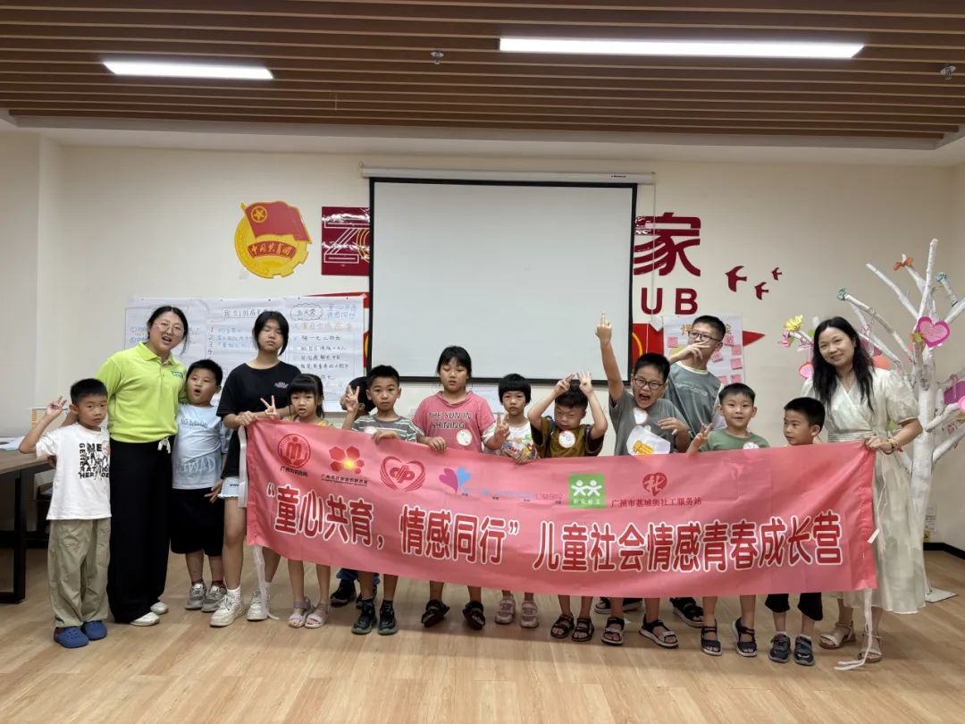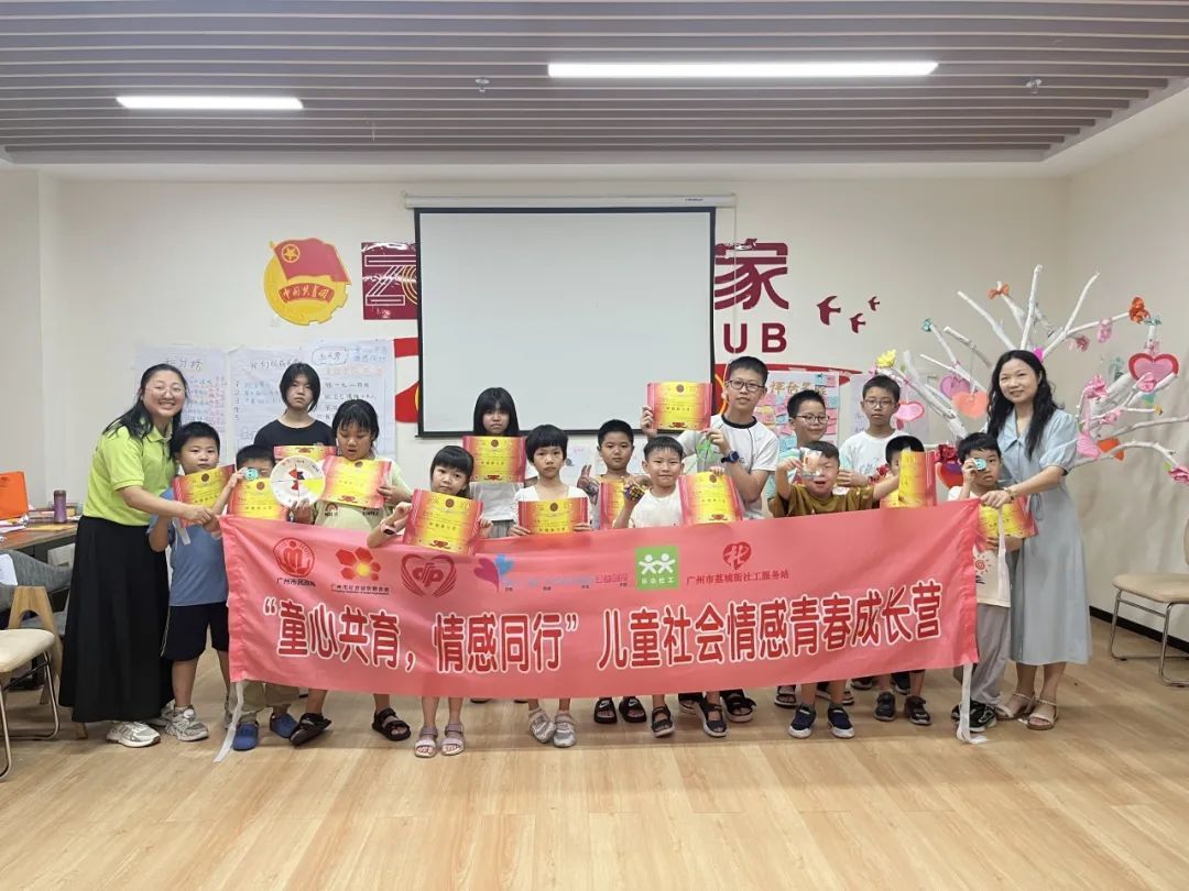 2025年7月21日至25日,第十二届广州市社会组织公益创投活动项目——“家力量・童未来”流动儿童心理支持计划,由广州市增城区乐众社会工作服务中心联合广州市荔城街社工服务站,开展主题为“童心共育・情感同行”儿童社会情感青春成长营。17名儿童在五天的沉浸式体验中,通过趣味活动探索自我、管理情绪、学会协作,收获了社会情感能力的显著成长。
