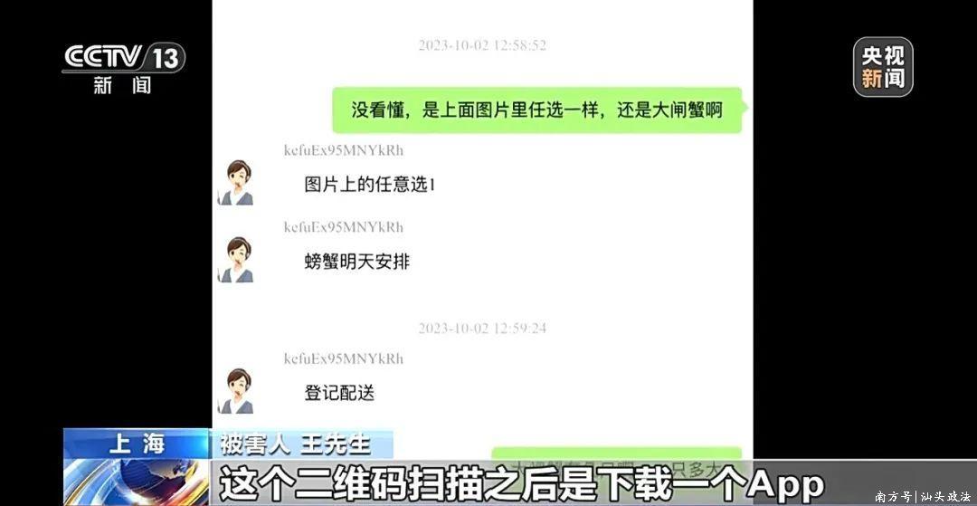 被害人 王先生:手机拿出来扫了那个二维码,就加到了一个客服,然后我就把礼品的兑换码发给了她,她就跟我说已经兑换成功了,但是要过段时间螃蟹才会发过来。然后她说还有一些其他的礼品赠送。