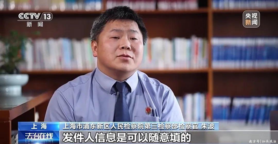 上海市浦东新区人民检察院第三检察部检察官 朱波:他们发货地址、发货人员直接使用了快递站点的工作人员的信息,而并不是真实的发货商家的信息。