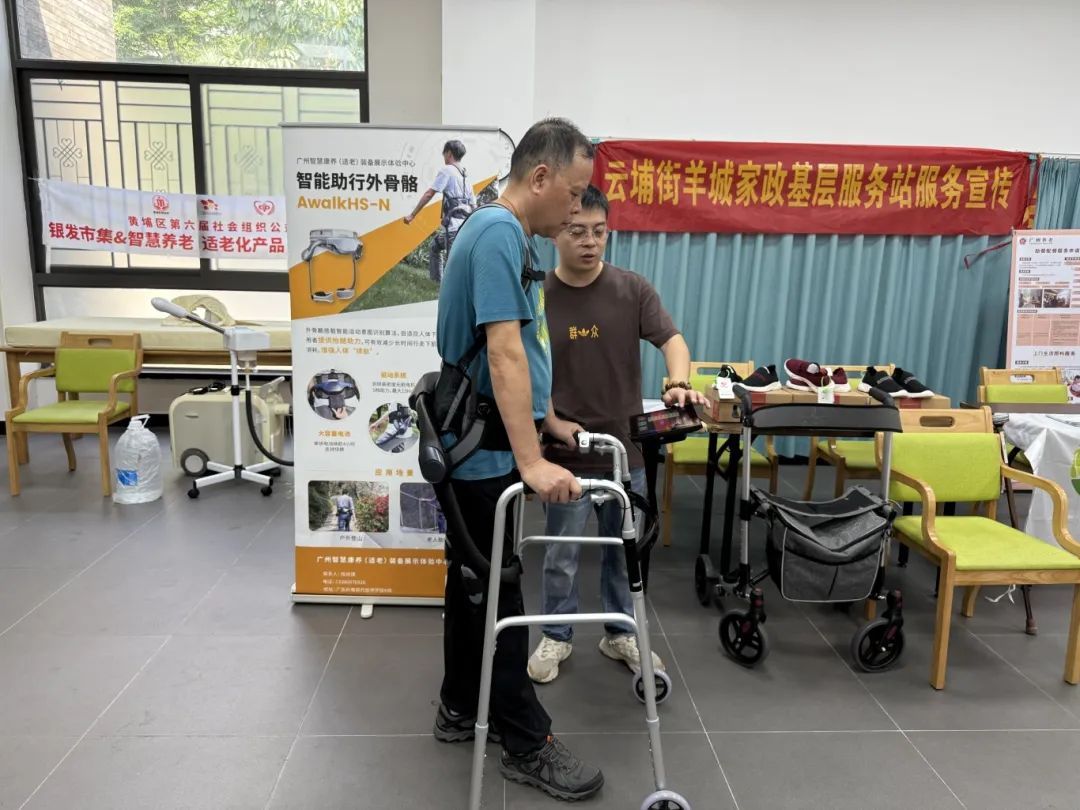 2025年7月19日,黄埔区云埔街道“银发市集”智慧康养专场活动的最后一天。社区活动中心弥漫着熟悉的艾草清香。助行外骨骼机器人、艾灸椅、中草药面部熏蒸仪三位"健康伙伴"如常守候,为长者们延续着这份家门口的科技关怀。