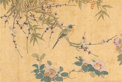 r把不同季节的花鸟放在一起表现并非周之冕独创,在绘画史中源远流长。古人很早就关注天地四时,唐代时,四时题材进入绘画领域。到五代、两宋时期,四时花卉题材兴起。根据《梦粱录》记载,宋人称焚香、点茶、挂画、插花为“四般闲事”,以之为风雅。花卉成了文人士大夫观照的对象,更成了他们笔下重要的主题。北宋名家赵昌曾以“四季”“四季花”为题创作,画作虽今已不可得见,但从苏轼、范成大文集收录的题画诗可知,其对于季节意象的选取已然十分考究。